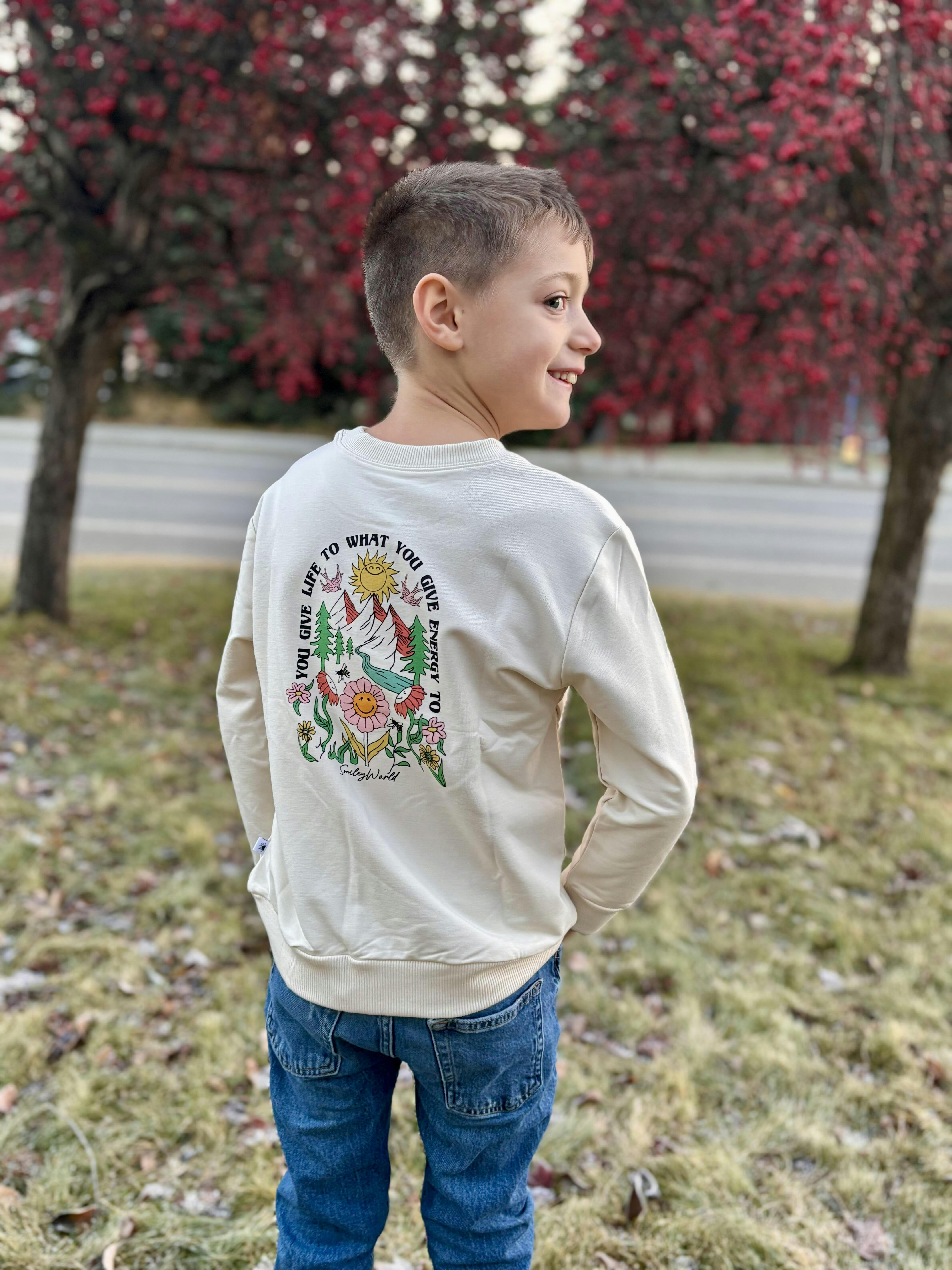 Made for big hearts and bright smiles, the Give Energy Crewneck is a cozy reminder to spread good vibes. Crafted from a super-soft bamboo cotton blend, it’s gentle on skin, lightweight, and perfect for every adventure from playground days to chill nights. With exclusive SmileyWorld® graphics and an uplifting message, this crewneck keeps positivity front and center.